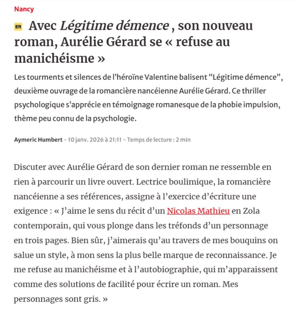 L’EST REPUBLICAIN, 11 Janvier 2026